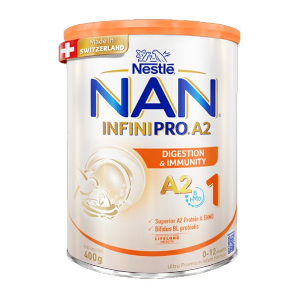 NAN Infinipro A2 Số 1 là sữa công thức dành cho trẻ từ 0 – 12 tháng tuổi. Sản phẩm có công thức dinh dưỡng hoàn chỉnh, phù hợp với trẻ sơ sinh bú bình hoặc trẻ bú bình phối hợp với sữa mẹ trong 6 tháng đầu đời; và trẻ trong giai đoạn tập ăn dặm từ 6 – 12 tháng, giúp bổ sung và cân bằng dinh dưỡng, là một phần trong chế độ ăn hằng ngày.